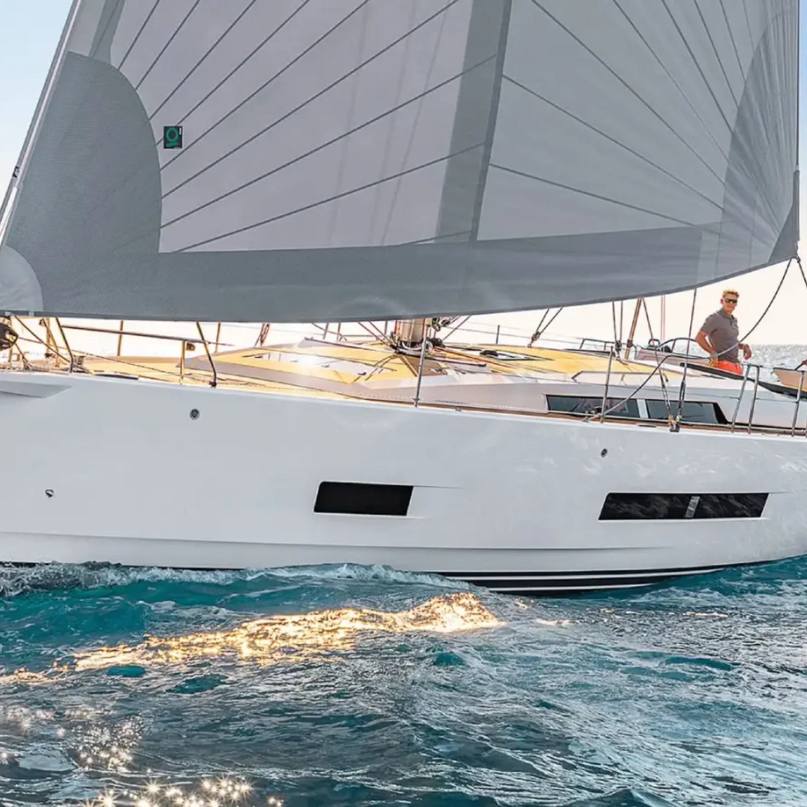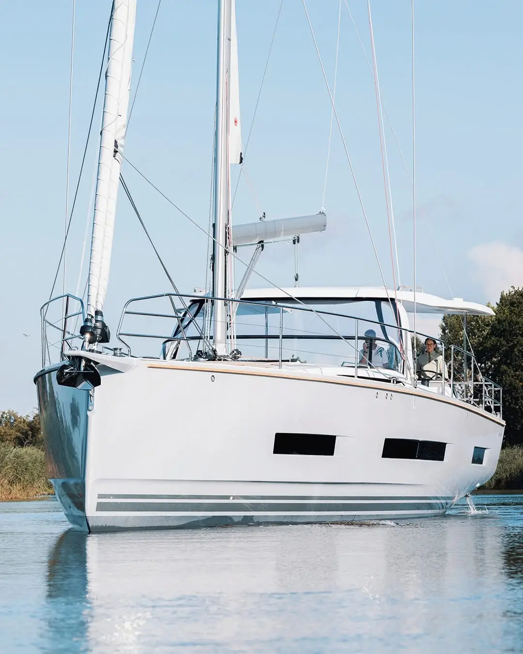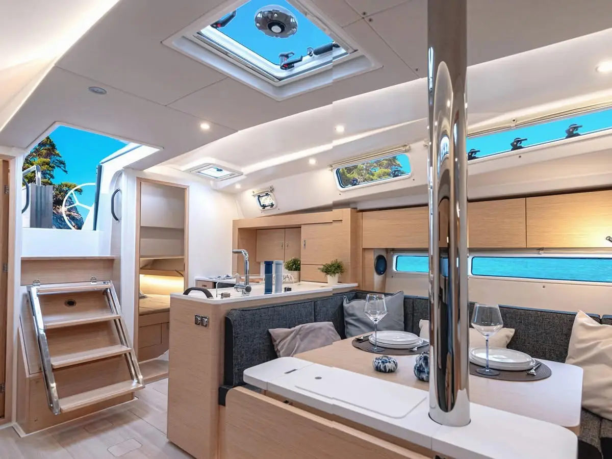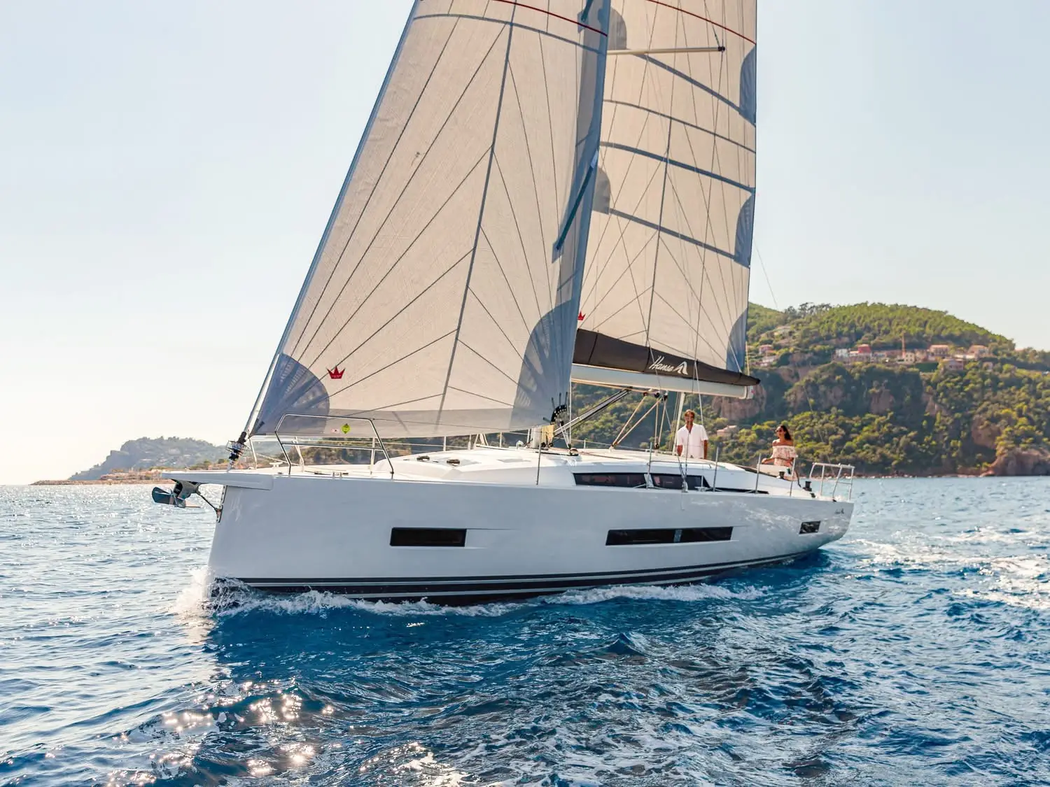 Hanse 410 – The Hanse 410 introduces refined aesthetics with a progressive hull design that enhances both performance and handling. Sustainability is at her core – with optional electric propulsion and eco-conscious systems.