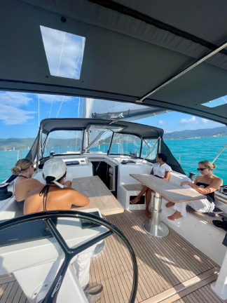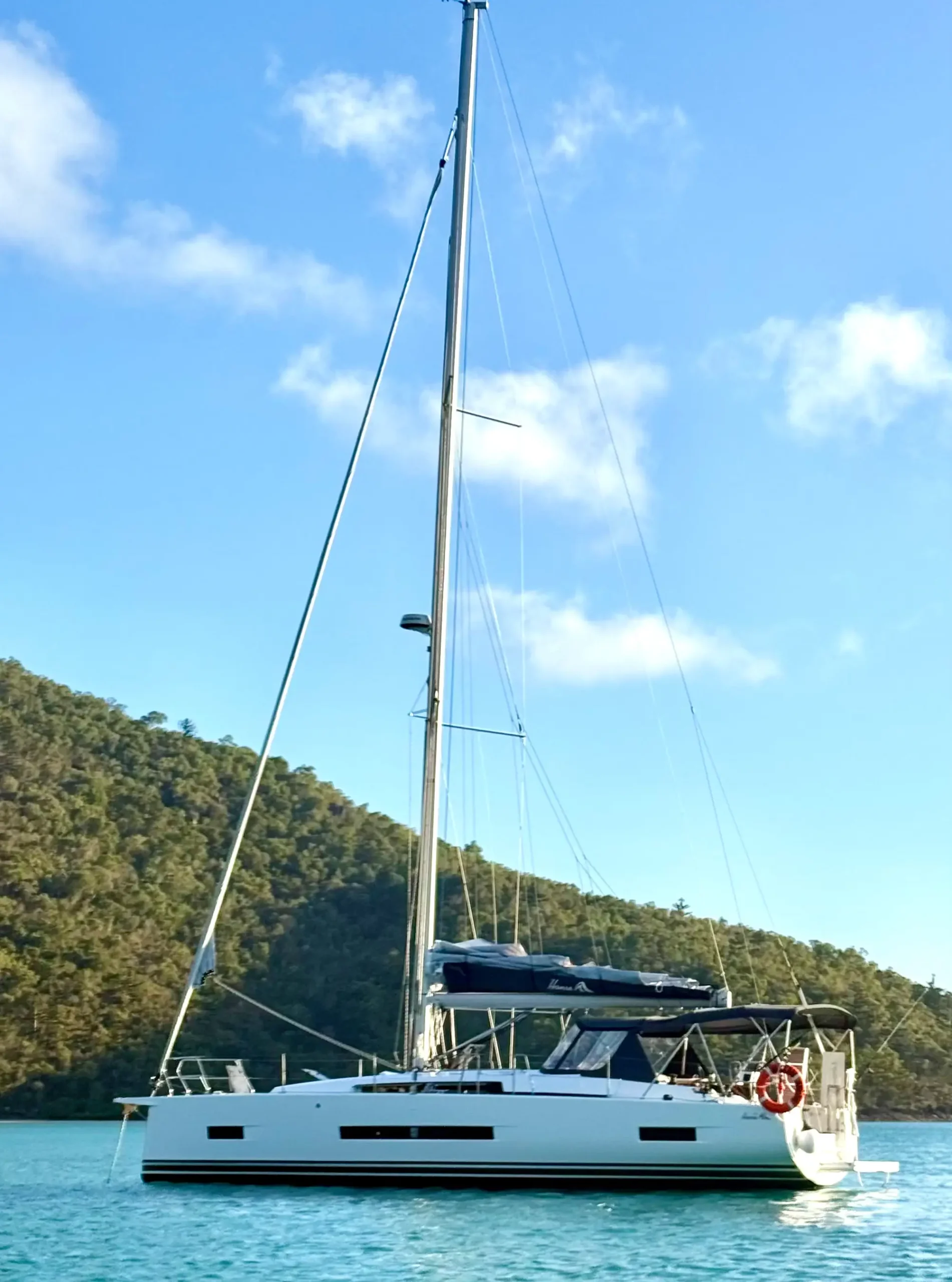 Lately, keen yacht spotters at Airlie Beach would have observed the Hanse 410 with its distinctive Signal White hull lining up in the Whitsunday Sailing Club’s popular midweek races.