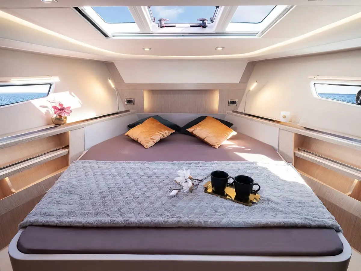 “the ideal choice for those seeking to maximize onboard space and versatility. Its spacious and bright deck salon fully utilizes the unique asymmetric design, making it the sensible option for buyers looking for both comfort and functionality.”