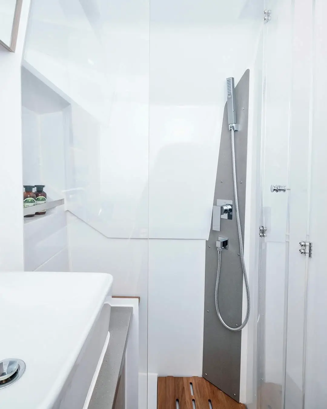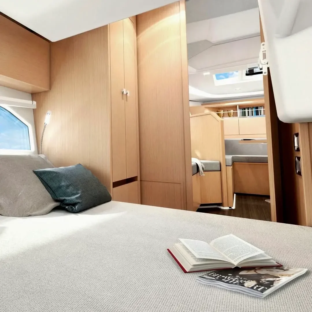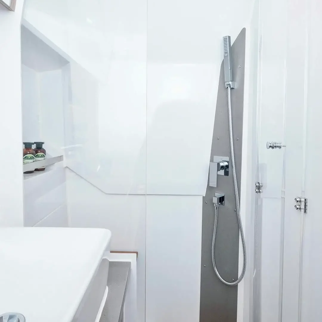 You can opt for one or two large cabins, plus large bathroom with separate shower. For example, the Owner’s cabin with 1.95 metre headroom can be converted into a spacious living area with a U-shaped sofa and table.