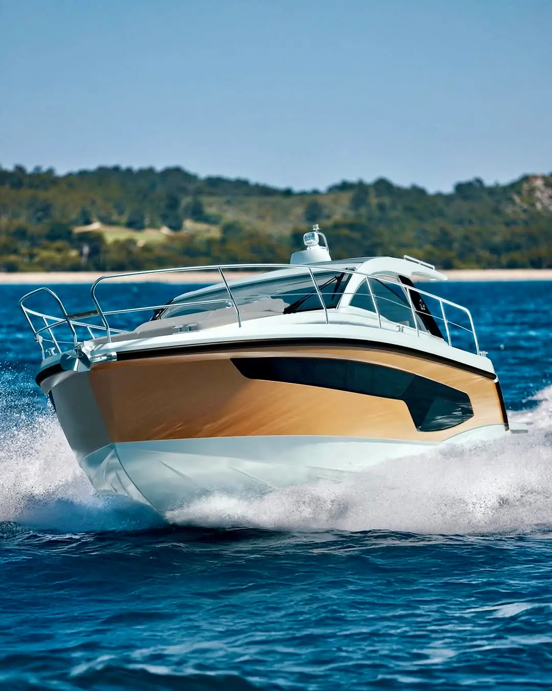 The SEALINE S335 gives owners 400hp and plenty of room to relax. If it’s light and views you’re after, the S335 is open on all sides and every detail is to enhance relaxation and enjoyment. On the bathing platform, teak decking, a stainless steel bathing ladder and a hot shower — which can be made to be extra-long on request — are a perfect start to water activities.